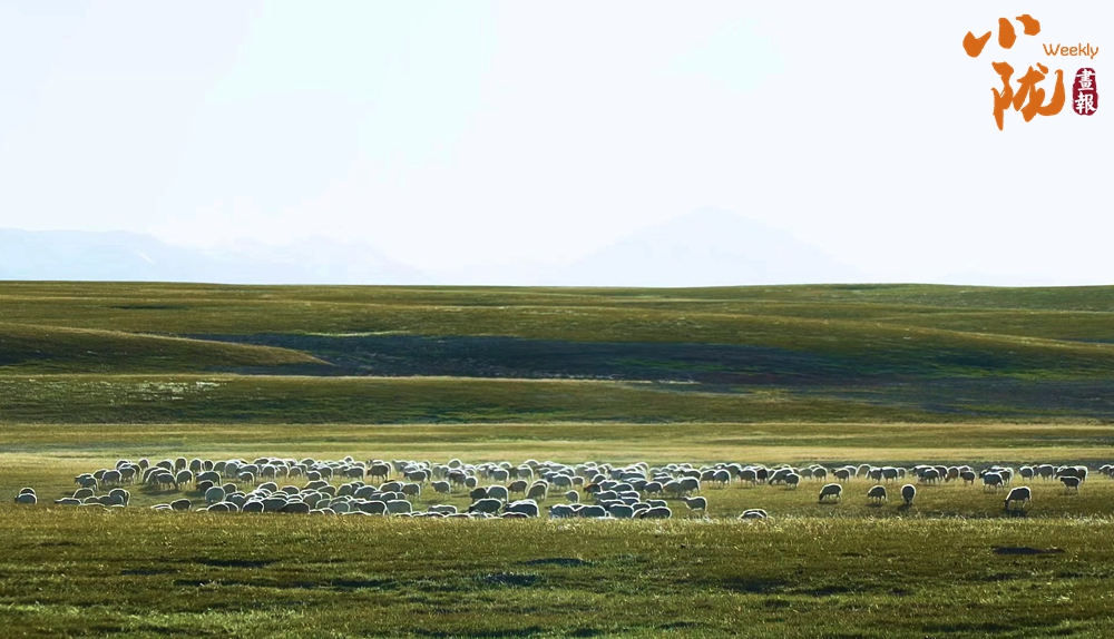羊群猶如無數顆珍珠灑落在滿目的金色里,為這片廣袤的大地增添了無限的色彩,使得整個草原動靜相宜。