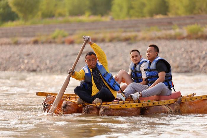 游客在黃河甘肅蘭州段體驗羊皮筏子。新華社記者 邢廣利 攝