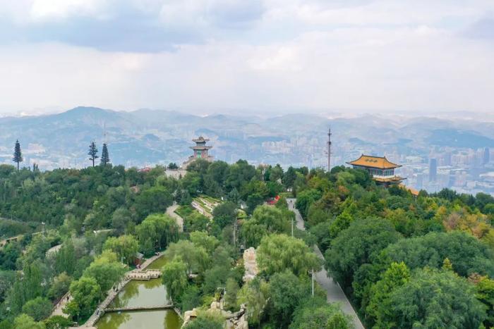 蘭州市城關區皋蘭山三臺閣景象。新華社記者 郎兵兵 攝