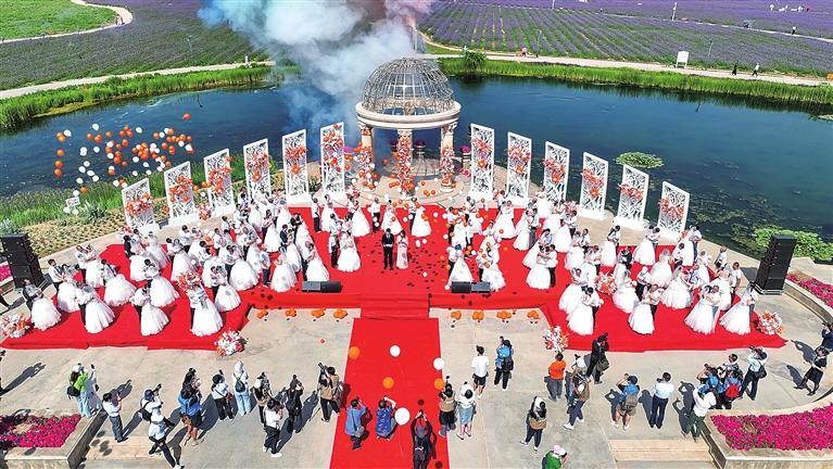 陽(yáng)光、微風(fēng)、花海……夏季的金昌紫金花海充滿(mǎn)浪漫氣息,溫柔而熱烈。6月29日上午,連續(xù)舉辦七屆的“遇見(jiàn)愛(ài),遇見(jiàn)你”薰衣草集體婚禮如約開(kāi)場(chǎng)。近年來(lái),一場(chǎng)場(chǎng)薰衣草之約集體婚禮引領(lǐng)金昌婚慶經(jīng)濟(jì)進(jìn)入一個(gè)快速發(fā)展階段,集體婚禮也成為金昌旅游對(duì)外宣傳推介的一張亮麗名片。