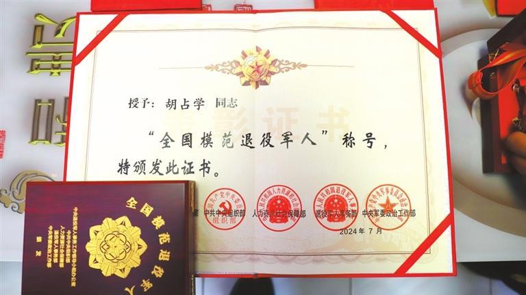 今年8月,胡占學被人力資源和社會保障部、中共中央組織部、退役軍人事務部、中央軍委政治工作部等軍地相關部門聯合授予“全國模范退役軍人”榮譽稱號,這是對退役軍人的最高榮譽和最大褒獎。