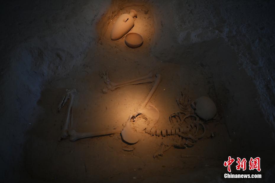 10月22日,2024青年漢學家研修計劃甘肅班團隊22個國家的青年漢學家,走進甘肅省天水市秦安縣大地灣遺址參觀并進行專題研修。大地灣遺址是新石器時代大型聚落遺址,出土了中國乃至世界上最早的彩陶文化、最早的文字符號、種植生產了中國第一批糧食品種黍、出現(xiàn)了最早的宮殿式建筑、發(fā)明了世界最早的水泥地面、創(chuàng)造了最早的繪畫作品——F411地畫。圖為大地灣博物館墓葬701。中新社記者 李亞龍 攝