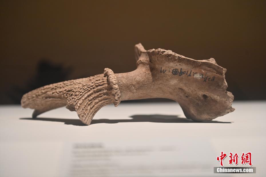 10月22日,2024青年漢學家研修計劃甘肅班團隊22個國家的青年漢學家,走進甘肅省天水市秦安縣大地灣遺址參觀并進行專題研修。大地灣遺址是新石器時代大型聚落遺址,出土了中國乃至世界上最早的彩陶文化、最早的文字符號、種植生產了中國第一批糧食品種黍、出現(xiàn)了最早的宮殿式建筑、發(fā)明了世界最早的水泥地面、創(chuàng)造了最早的繪畫作品——F411地畫。圖為大地灣博物館展品梅花鹿角。中新社記者 李亞龍 攝