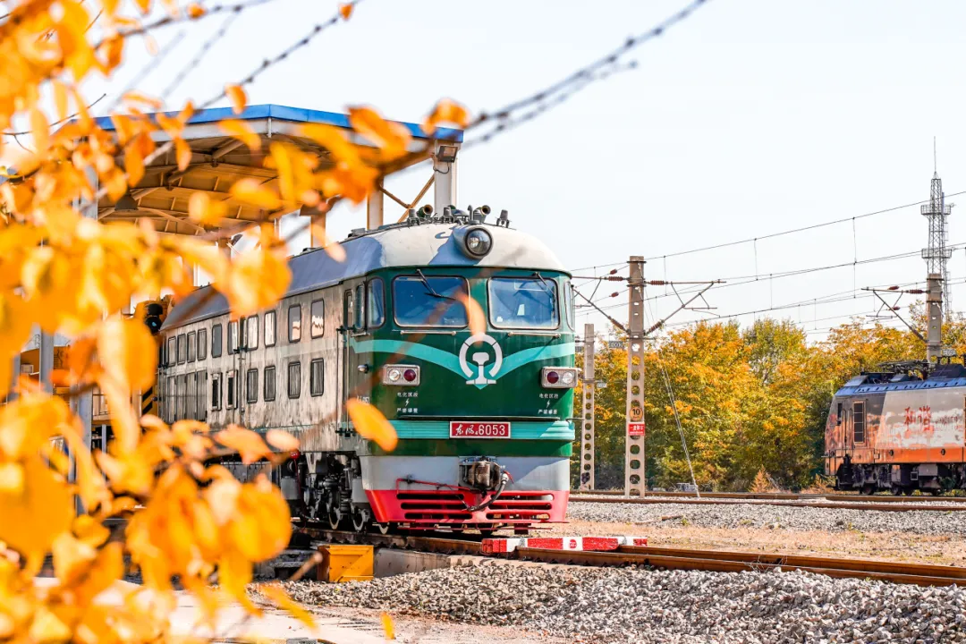 秋日的叢林,如同萬道金光,列車緩行其間構成一幅幅溫暖的畫面。陽光灑在列車上閃爍著金屬特有的光澤,與周圍的色彩交織在一起,每一張美的都像壁紙。