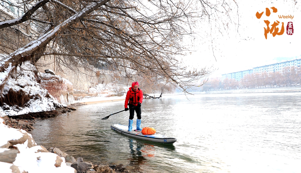 宛如江南水鄉的太極島在雪的映襯下,魚塘四周暗黃色的蘆葦枯敗中藏神韻,它們披著白雪,頂著寒風,為大地增添了一抹溫暖的色彩。