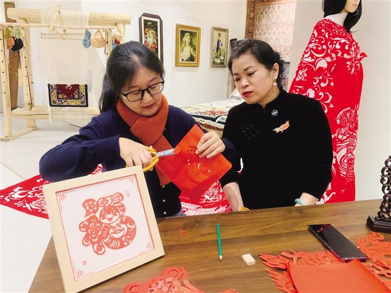 2007年,安寧剪紙被列入安寧區(qū)第一批非物質(zhì)文化遺產(chǎn)代表性項(xiàng)目名錄,2011年又成功入選蘭州市第二批非物質(zhì)文化遺產(chǎn)代表性項(xiàng)目名錄。52歲的剪紙藝術(shù)家史婷,是國(guó)家級(jí)非遺代表性傳承人。春節(jié)前夕,史婷剪紙工作室里人來(lái)人往,熱鬧非凡。她以“蛇元素”為主題,創(chuàng)作了《蛇盤(pán)兔》《雙蛇送福》等作品,還有福字、掛歷、抱枕等特色剪紙作品。一把剪刀在她的手中上下翻飛,剪出了“指尖上”濃濃的年味兒。
