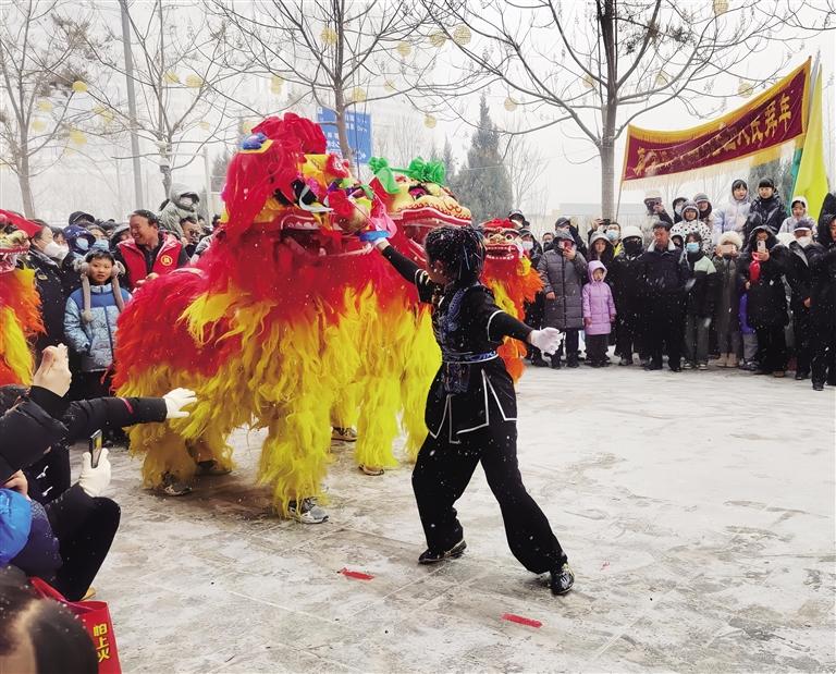 柴宗峰的獅舞技藝不僅來自父親的傳授和老人們的悉心指導,他還通過網絡視頻學習其他地方的表演,不斷吸收新的動作和技巧。他說:“我在獅舞動作中加入了南派獅舞的‘抖毛發’‘撓耳朵’‘舔腿’等動作,讓表演更加豐富靈動。”