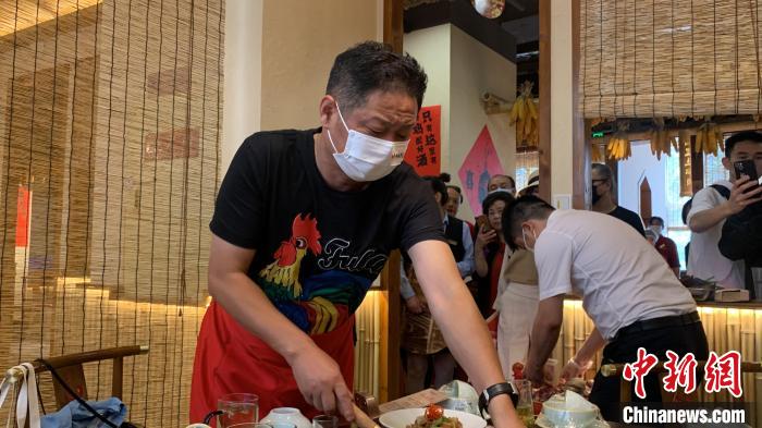 趙亮現場給食客展示如何炒制一鍋美味的柴火雞。 何浠 攝