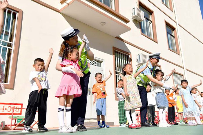 6月13日,臨澤縣公安局交警大隊法治宣傳民警走進濱河幼兒園,通過現場授課、有獎競答、認交通指示牌等寓教于樂的方式向幼兒們普及了道路交通標識等常識,提高幼兒們的交通安全意識。新甘肅·甘肅法制報通訊員 安學海 攝