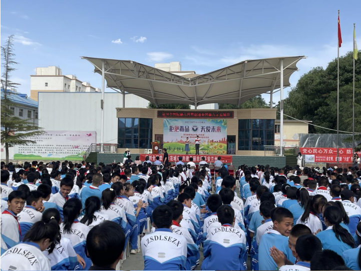 活動現場,通過擺放禁毒知識宣傳展架、仿真毒品模型、宣傳資料,懸掛橫幅,電子屏滾動播放宣傳語等方式烘托了一場濃厚禁毒宣傳氛圍;禁毒知識競賽搶答,禁毒知識謎語競猜,看圖識毒品、“趕走毒品”小游戲等形式多樣、內容豐富、突出特色、注重實效的宣傳活動、形態逼真的毒品仿真模型,吸引青少年有了進一步深入了解毒品的形狀、種類、危害的好奇心,禁毒志愿者乘勢對“開心水”“奶茶”“大麻”“跳跳糖”“郵票”等善于偽裝,誘惑性和危害性極強的新型毒品進行重點講解,提醒大家要提高自我保護意識和能力,提防新型毒品的誘惑,遠離不良娛樂場所,不接受陌生人提供的食物和飲品,為同學們上了一堂別開生面的禁毒教育課。同學們將自己所學、所看、所想、所聽的禁毒知識積極參與討論互動,切實提高了大家對毒品特別是新型毒品的辨識能力。同時,活動現場還通過給同學們發放“致家長的一封信”的方式,發動在校學生“小小宣傳員”的作用,將禁毒知識說給身邊的朋友、自己的家長聽,從而傳播禁毒種子,匯聚全民禁毒力量,共同推進全國禁毒示范城市創建工作向深發展。