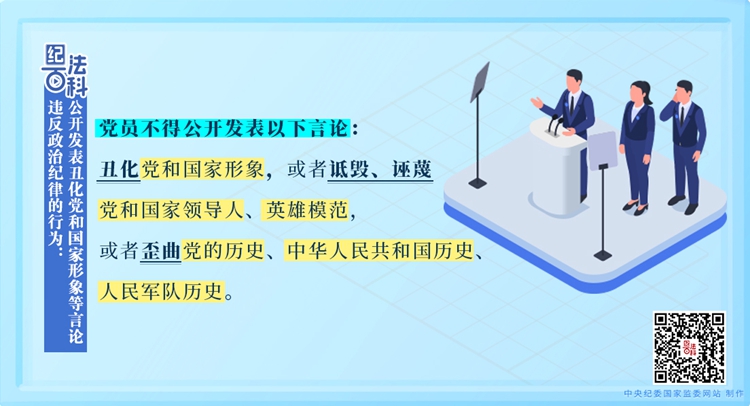 違反政治紀律的行為:公開發表丑化黨和國家形象等言論