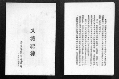 1949年5月,華東軍區司令部印發的《入城紀律》。桂星星 供圖