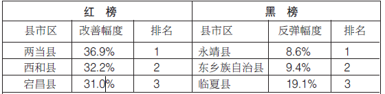 2.紅榜為改善幅度排名前3位的縣市區,黑榜為反彈幅度排名前3位的縣市區。