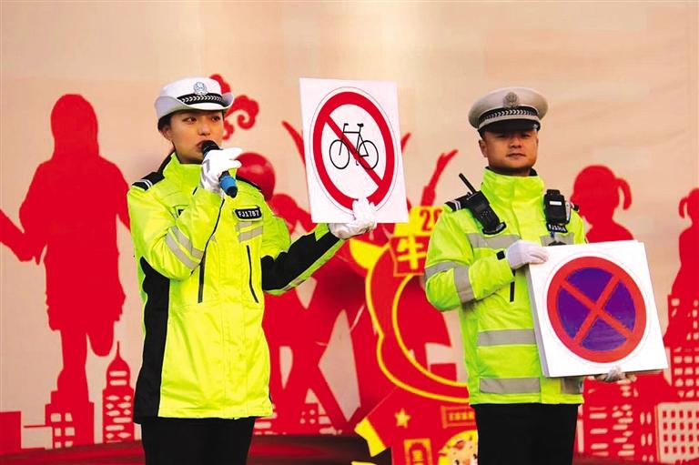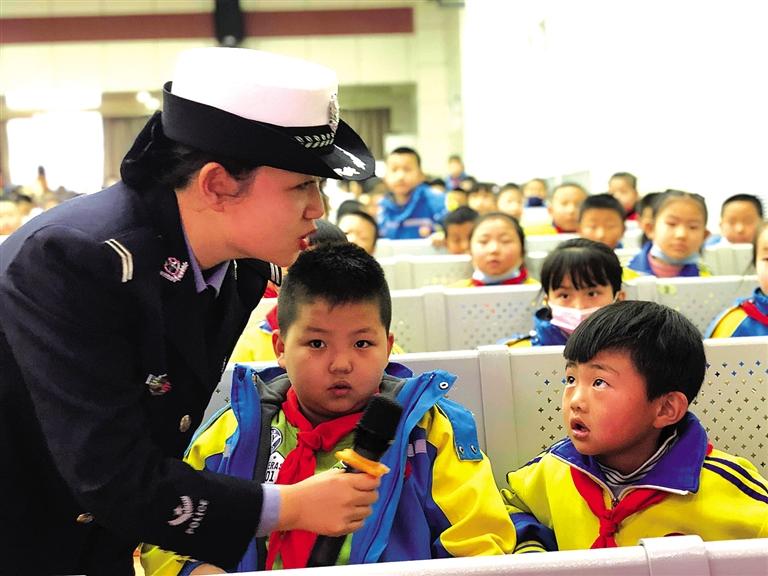民警帶領同學們學做“交通警察指揮手勢”,通過提問交通標志等一系列“寓教于樂”的形式,加深了學生對交通規則的理解,號召同學們當好交通安全宣傳員,把學到的交通安全知識與父母分享,讓大家一起遵守交通規則,遠離交通危險行為,提高自我防護意識。
