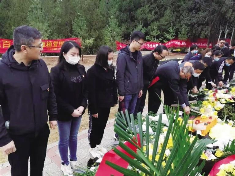 近日,市人社局直屬機關黨委組織60余名黨員干部在蘭州烈士陵園開展“緬懷戍邊英雄·傳承紅色基因”為主題的清明祭掃活動。 在“衛國戍邊英雄”陳紅軍烈士悼念廣場,黨員們為英雄敬獻了花籃。