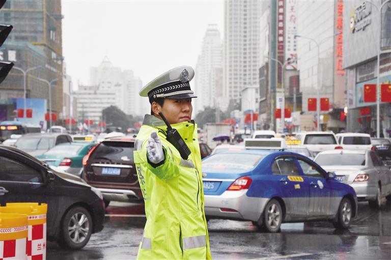 蘭州交警雨天指揮交通 葛 強 攝
