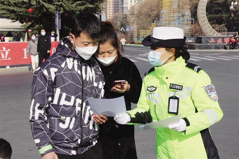 交警發(fā)放文明出行宣傳資料 葛 強(qiáng) 攝