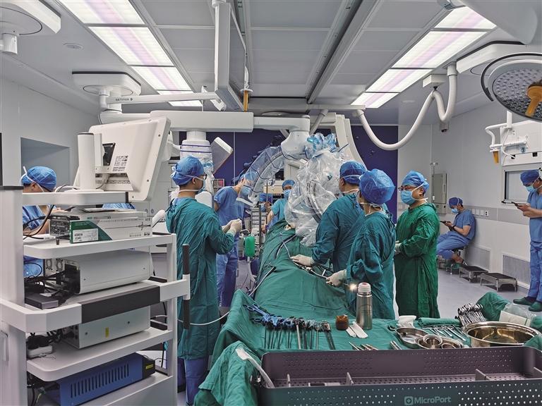 本次完成臨床驗證的單臂構型手術機器人具備完全自主知識產權,移動靈活,設置便捷。通過體表2至3厘米單一小切口完成手術操作,其蛇形設計器械可以在狹小空間內實現7個自由度,設計精細,易于操作。與傳統多孔腔鏡手術相比,手術切口位于臍孔,術后不影響美觀,具有切口更小、對組織侵襲更少、機器人系統擺位時間短、擺位空間大等優勢,患者接受程度更高,臨床應用前景廣闊。