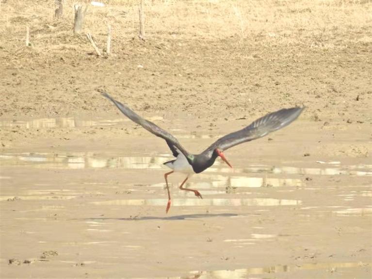 黑鸛是國家一級重點保護野生鳥類,喜在河流、沼澤、濕地中覓食魚、蛙、昆蟲等,繁殖于崖壁或高樹上。黑鸛在我國分布于東北、西北、華北等大部分地區,分布較廣,但種群數量較少。黑鸛對覓食水域,環境安全性要求極高,水質清澈,水體食物豐富,對棲息環境十分“挑剔”。黑鸛現身該區域,從一個側面印證了該區域水質向好。據介紹,連年來,連城保護區開展生態治理修復工程,生態環境明顯改善,該局加強水域內生物多樣性保護工作力度,引來大天鵝、黑鸛、大白鷺、普通秋沙鴨、赤麻鴨、綠頭鴨等水鳥來此棲息停歇,成為美麗風景線。