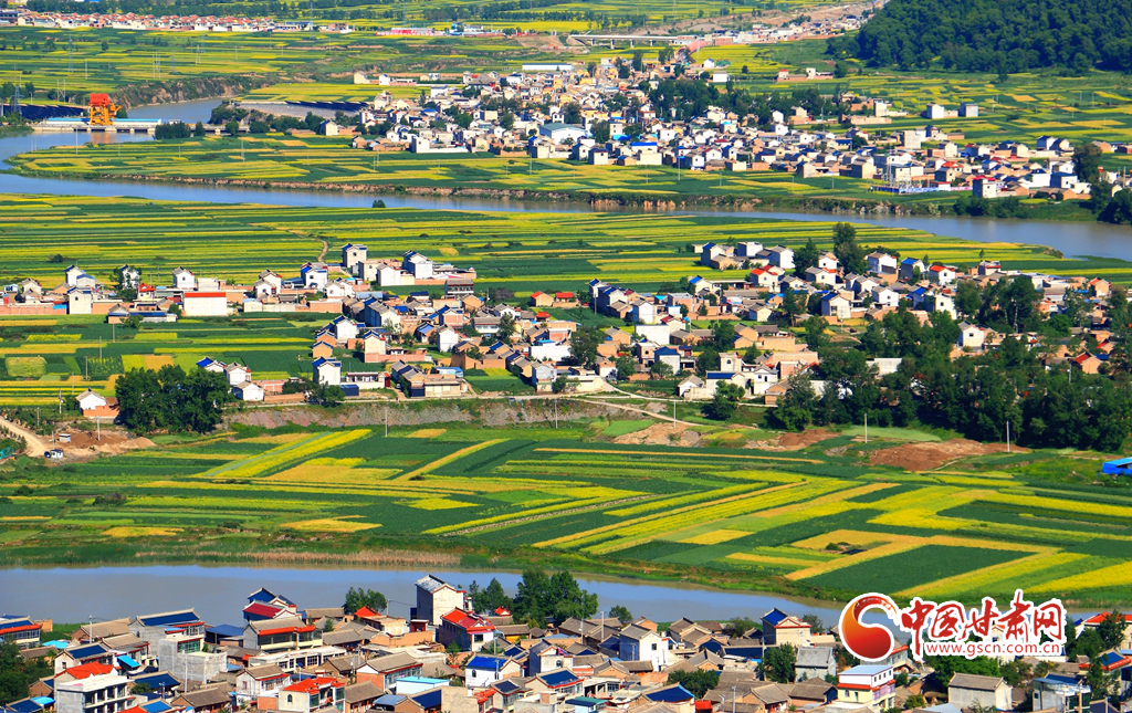 盛夏時節,岷縣十里鎮洮河兩岸的油菜花競相綻放,與民居、山川、林地、豐收在望的各類中藥材相映,構成了一幅生態宜居的田園畫卷,美不勝收。