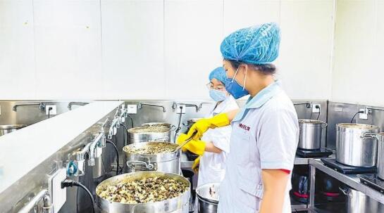 7月17日,記者在位于蘭州市南濱河路的佛慈養生堂看到,過道里堆滿了中藥飲片,一袋袋湯劑整齊擺放,煎藥中心內的設備不停運轉,十余名煎藥師不停忙碌……一股濃烈的藥香撲鼻而來。