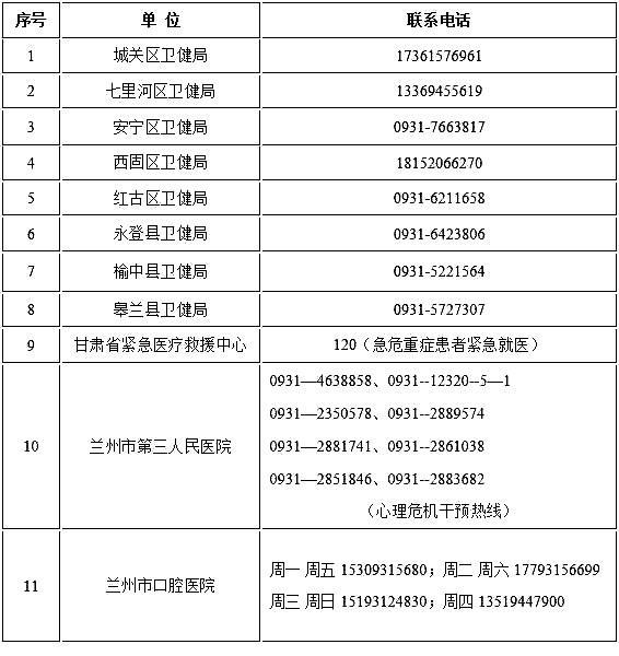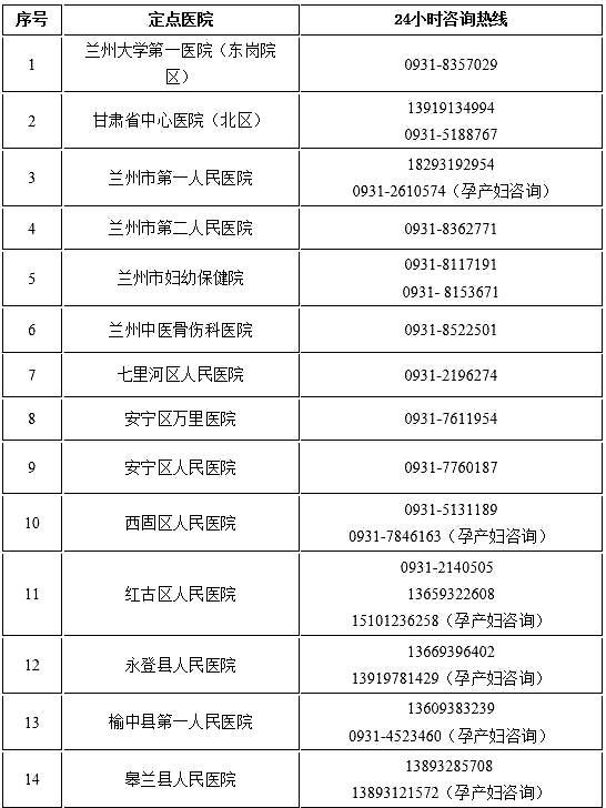 •蘭州市域“非綠碼”定點醫院24小時咨詢熱線•