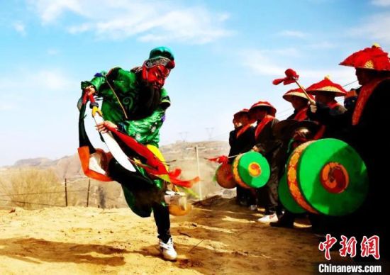 圖為甘肅臨夏州永靖縣村民表演儺舞。(資料圖) 侯奇志 攝