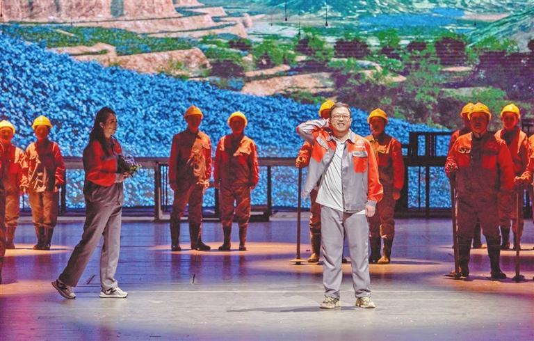 演出結束后,《不遙遠的胡麻嶺》主創人員以及劇中兩位人物原型、胡麻嶺隧道建設者李紹杰、夏荔被請上舞臺。