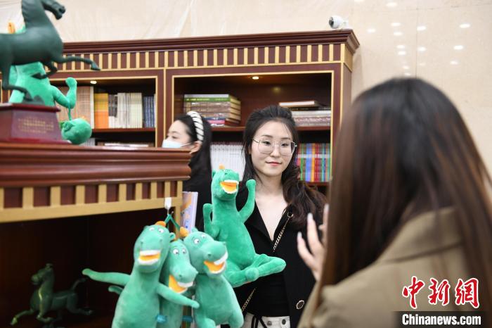 3月26日,甘肅蘭州,絲路旅游持續升溫,甘肅省博物館推出的文創產品“綠馬”惹游客“愛不釋手”,讓游客流連忘返。