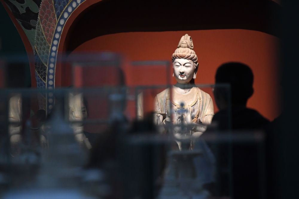 4月5日,觀眾在敦煌研究院蘭州分院敦煌藝術館參觀。新華社記者陳斌攝
