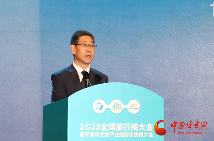 何效祖在致辭中說,平涼是甘肅向東開放的“門戶”城市,是風景宜人的旅游城市,是甘肅布局的文旅康養基地和支撐“一核三帶”區域發展格局中的重要支點,擁有崆峒山、大云寺·王母宮、瑤池溫泉等眾多聞名遐邇的人文和自然景觀。今天,我們與平涼市委市政府、中國旅行社協會、甘肅公航旅集團一道搭建平臺,誠邀各位嘉賓走進甘肅、深入平涼,組織開展宣傳推介、洽談合作、展示展銷、考察踩線等系列活動,就是要引導大家深度感知甘肅高質量發展的強烈愿望,實地觸摸甘肅文旅如火如荼的生動實踐,誠懇表達隴原兒女“視企業家為最寶貴財富”的真誠合作和赤誠服務之心。我們衷心希望,廣大中外旅行商和文旅專家、文旅企業家以本次大會為契機,加強交流互鑒,深化務實合作,加大在甘投資力度,組織更多游客到甘肅觀光旅游,帶動更多優質文旅企業和項目落戶甘肅,合力譜寫甘肅文旅高質量發展的嶄新篇章!