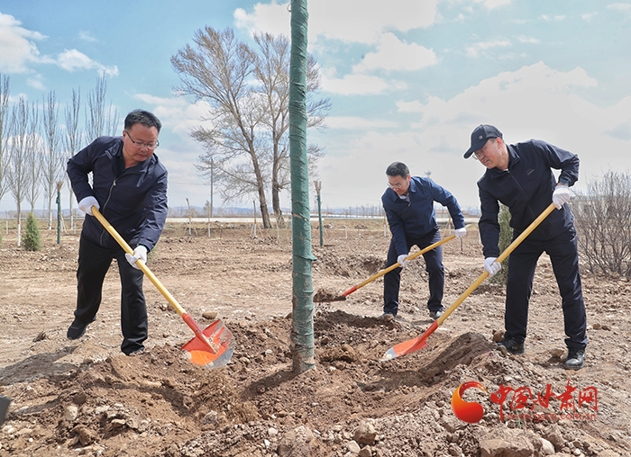 中國甘肅網和中鐵二十局市政公司黨員和職工到達泗水鎮植樹現場后,揮鍬鏟土,抬水澆樹,干的熱火朝天,全體人員按照分工,分組協作認真種好每一棵樹,為當地添一抹綠色。
