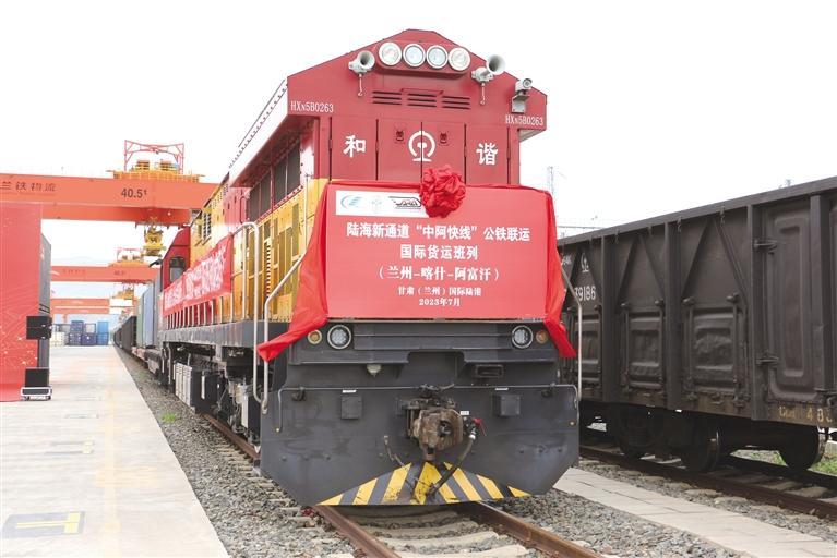 陸海新通道“中阿快線”公鐵聯運國際貨運班列的開行,對蘭州市打造國家重要的綜合物流樞紐和向西向南開放新高地有重大意義,不僅進一步擴大了陸海新通道在中亞地區的輻射面及國際影響力,而且體現了陸海新通道聯動中亞、融入和服務雙循環的重大作用。