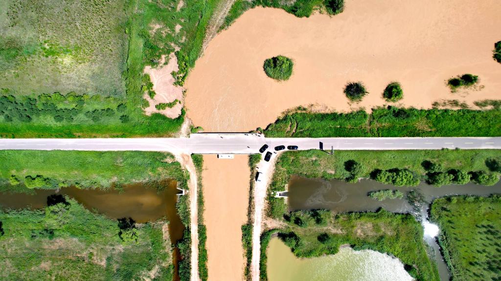 黃河三角洲國家級自然保護區黃河口4號引水閘(下)及引水渠。新華社記者 劉詩平 攝