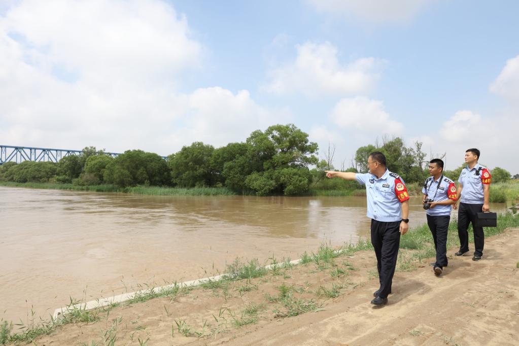 黃河派出所和黃河河務局水政監察大隊人員對刁口河生態補水進行巡查。新華社記者 劉詩平 攝