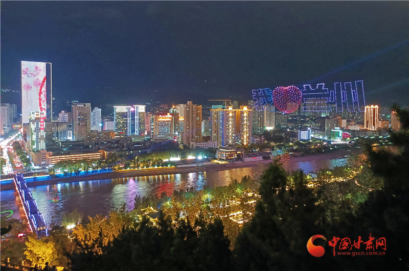 9月30日“黃河·印象”國慶大型無人機演出秀在黃河之濱上演 (宋芳科 攝)