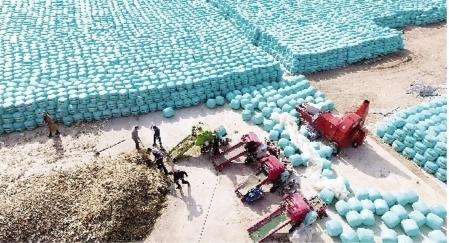 廣袤大地鋪金繡綠。在廣河縣齊家鎮糧改飼種植基地,一臺臺大型收割機正在田間忙碌穿梭,玉米連同秸稈被農機收割,一塊塊農田耕耘平整,構成一幅秋收風景圖;