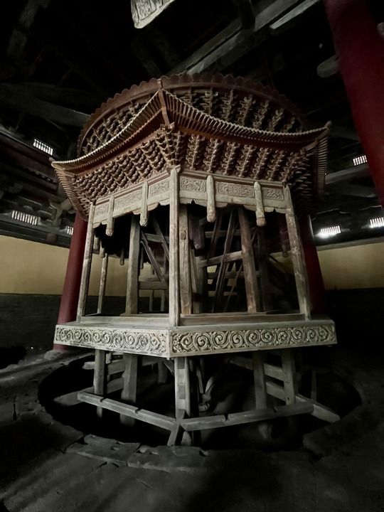 轉(zhuǎn)輪藏指可以轉(zhuǎn)動(dòng)的經(jīng)書架。它始建于北宋、直徑達(dá)7米,榫卯相嵌形成一座古樸的八角亭。八根方柱自頂部向下收縮,將重量匯至一點(diǎn)。“如此巨大的木建筑,一兩人就能推動(dòng),常令游客驚嘆。”正定縣隆興文化旅游發(fā)展有限公司講解員王瑋瑤說。