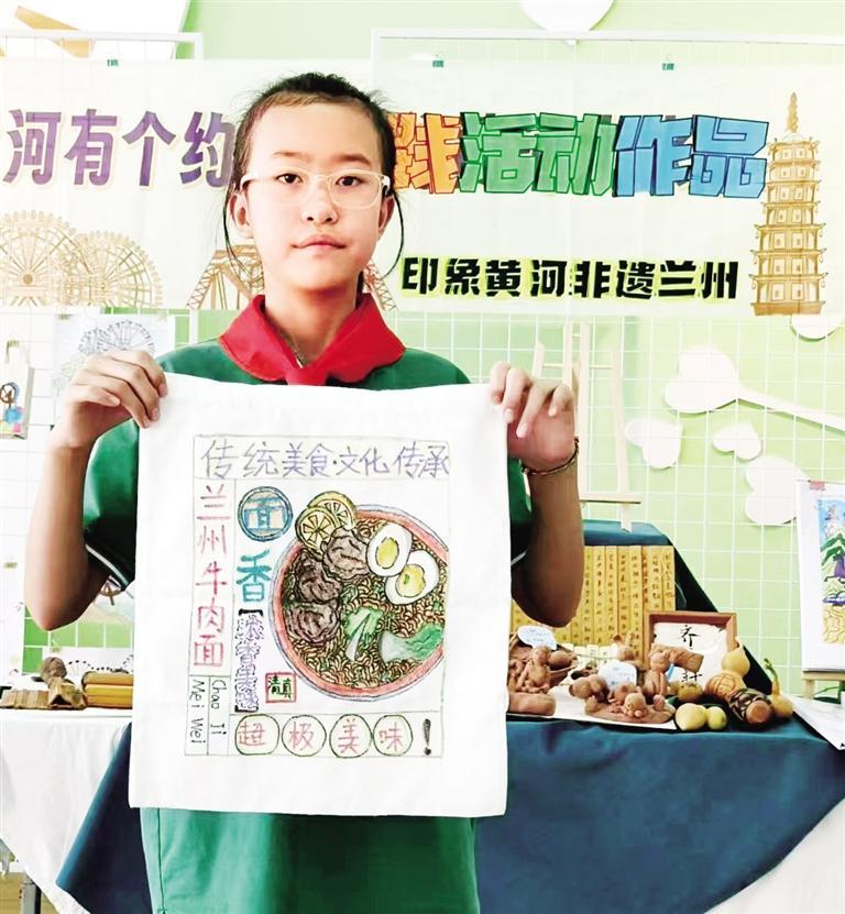 開學伊始,蘭州市城關區牟家莊小學在學校一樓大廳的小舞臺上精心布置以“‘暑’我不一樣,實踐助成長·我和黃河有個約會”為主題的“暑期實踐活動成果”作品展,同學們用廢舊材料自制的水車、精美的蘭州剪紙、蘭州牛肉面文創產品等代表著蘭州文化特色的作品琳瑯滿目、種類豐富,來往的師生都情不自禁地駐足欣賞,感受家鄉文化的魅力。
