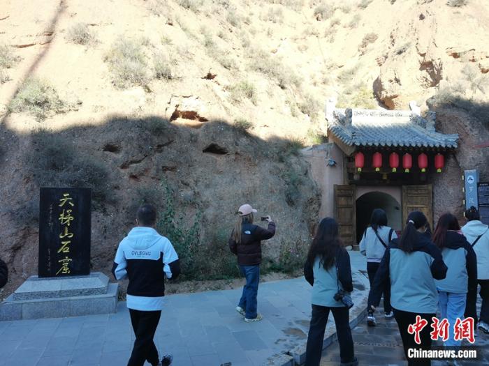 資料圖:位于甘肅武威市涼州區境內的天梯山石窟吸引游人參觀。田鵬鶴攝