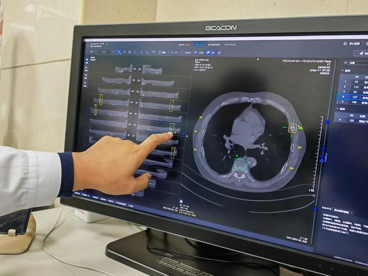 在寧夏回族自治區(qū)銀川市第一人民醫(yī)院,放射科副主任醫(yī)師姜榮興打開電腦上的人工智能輔助診斷系統(tǒng),導(dǎo)入病患CT影像資料后,輕點(diǎn)鼠標(biāo),系統(tǒng)瞬間完成初篩——24根肋骨逐一呈現(xiàn)在屏幕上,骨折和疑似骨折的部位一目了然。醫(yī)生再對(duì)初篩結(jié)果作出診斷處理,全程用時(shí)不到4分鐘。