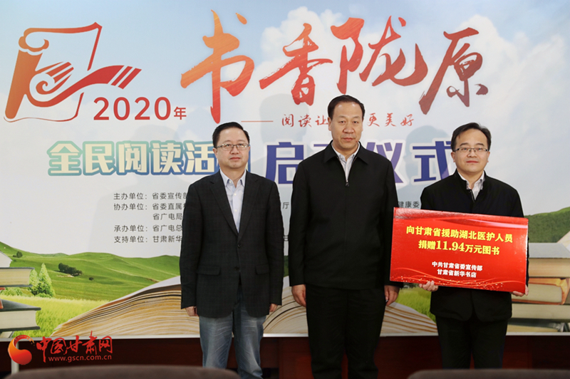 啟動儀式上,省委宣傳部副部長、省新聞出版(版權)局局長王成勇宣布2020年“書香隴原”全民閱讀活動正式啟動。省委宣傳部聯合讀者集團新華書店飛天傳媒股份有限公司通過省衛生健康委,向全省796名支援湖北醫護人員贈送了價值11.94萬元的圖書。省內10家出版社的相關負責人通過中國甘肅網現場直播為現場嘉賓、廣大網友推介優秀甘版圖書。