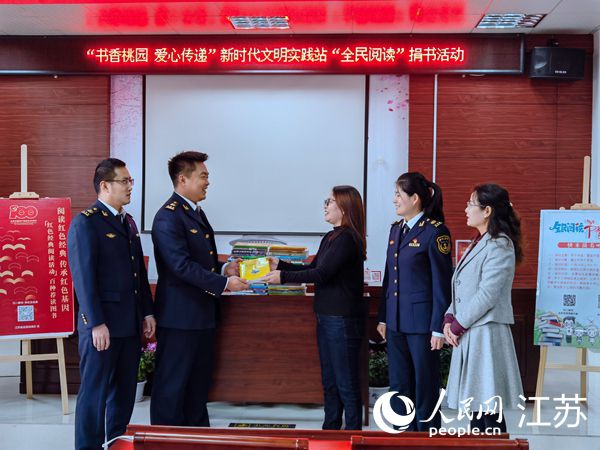 連云港航標處向墟溝街道桃園社區捐贈圖書。張晗攝