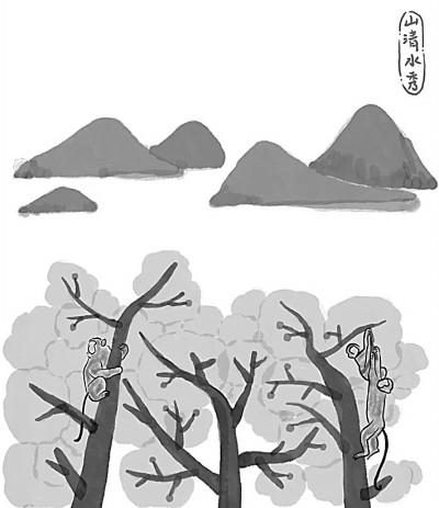 《猴兒與少年》中的“猴兒大學士三少爺”是王蒙貢獻給文壇的一個生動有趣的藝術形象,從生物學、生態學、生命學的意義上,王蒙寫活了“猴兒性”。猴兒三少的伶俐機智、閃轉騰挪,自由自在自如自安自鬧自玩,不怕人、不服人、不討好于人的獨特“個性”,給人留下深刻印象,特別是對猴兒哥二叔耍猴兒、“三少爺照鏡子”的描寫,簡直妙絕——左照右看,東抓西撓,前伸后縮,急躁狂亂,猴態百出。從耍猴兒的角度看,實在趣味盎然。
