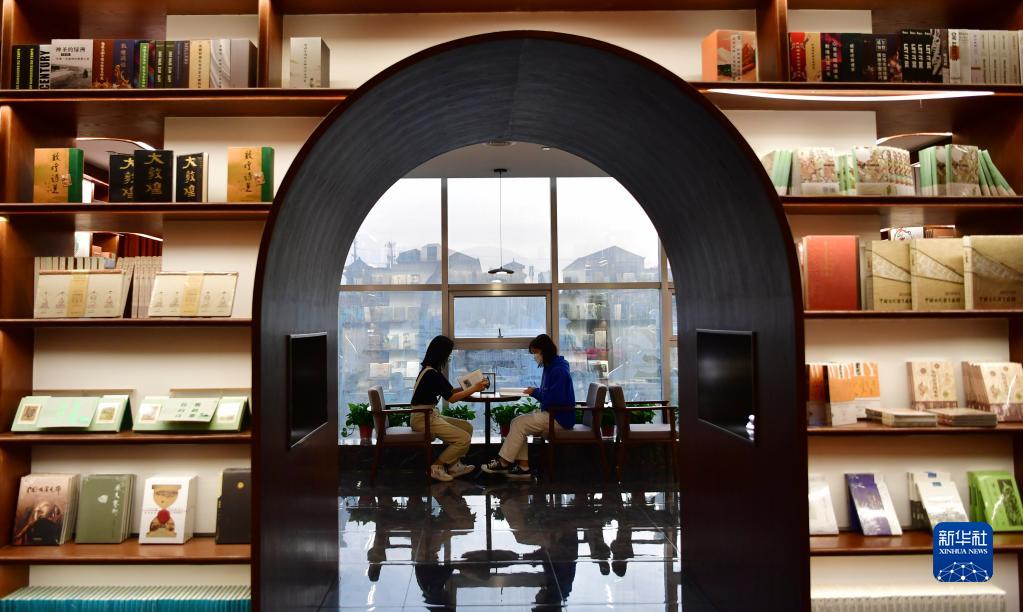 讀者在敦煌書局閱讀區看書(4月21日攝)。新華社記者 杜哲宇 攝