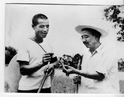 柳青(右)與《創業史》中梁生寶原型人物王家斌在一起檢查生產。