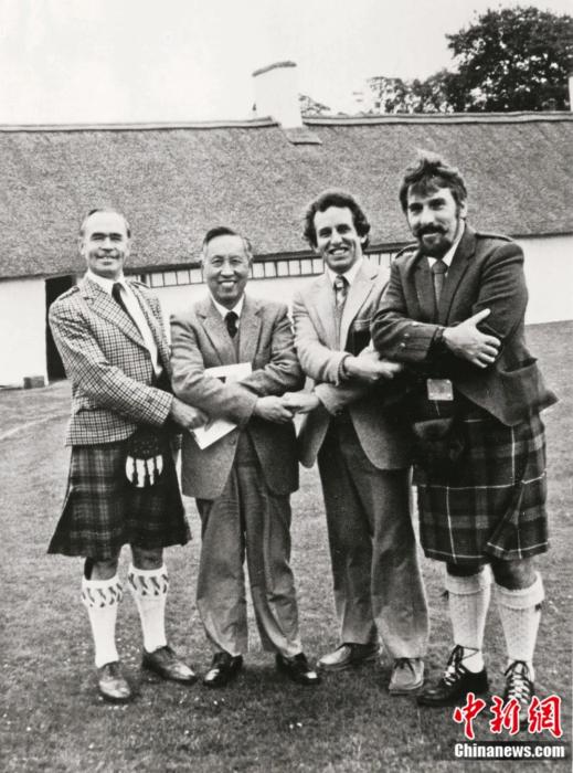 1982年7月,王佐良(左二)在蘇格蘭詩人彭斯的故鄉歐文城。王佐良是最早譯介彭斯的譯者之一。中新社發 受訪者供圖