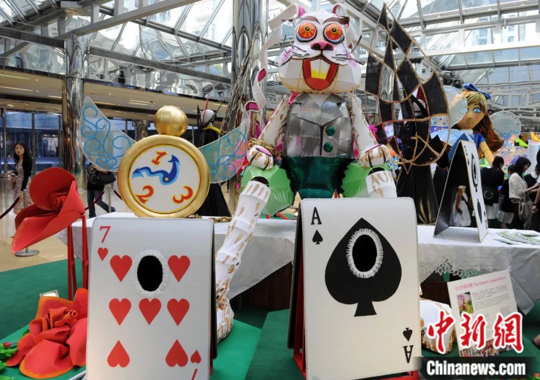 以西方著名兒童文學(xué)作品《愛麗絲夢游仙境》為藍本創(chuàng)作了巨型木偶及巡游藝術(shù)品在香港太古城中心亮相。中新社記者 任海霞 攝