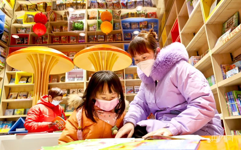 1月23日,市民帶著孩子在甘肅張掖錦華書城讀書、選書、購書。(央廣網發 王將 攝)