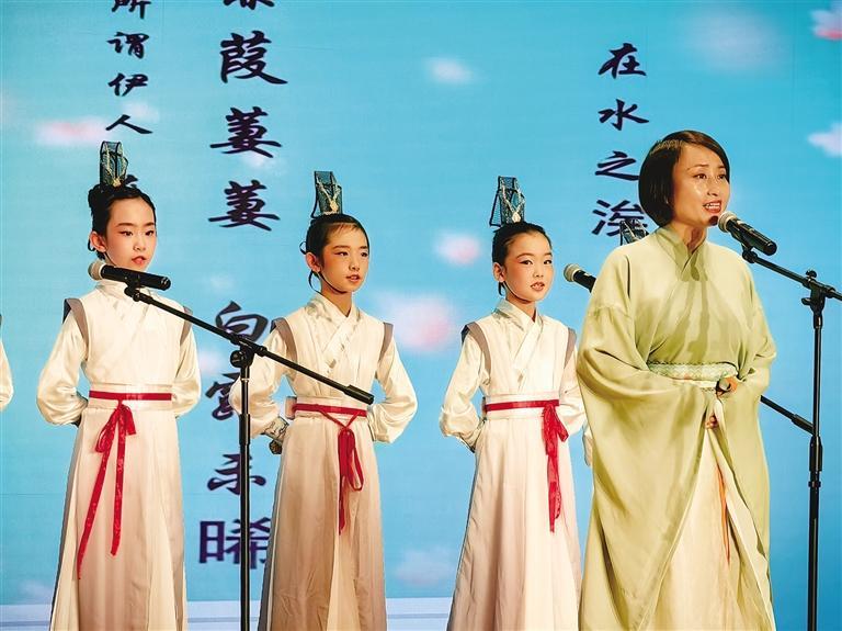 在《壯美山河絢麗詩篇》中,《詩經·秦風·蒹葭》在蘭州市東郊學校曹林老師和方培丞等12位小朋友的演繹下,古風古韻氣息撲面而來。